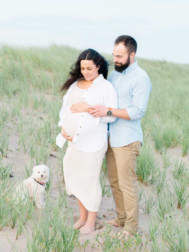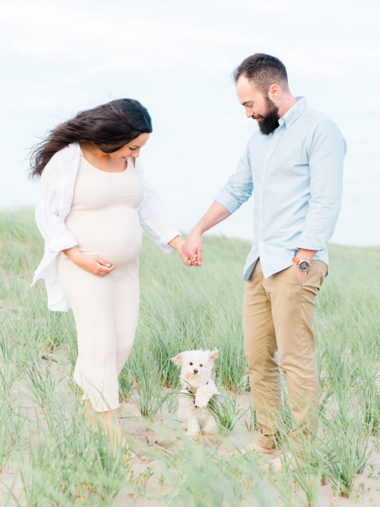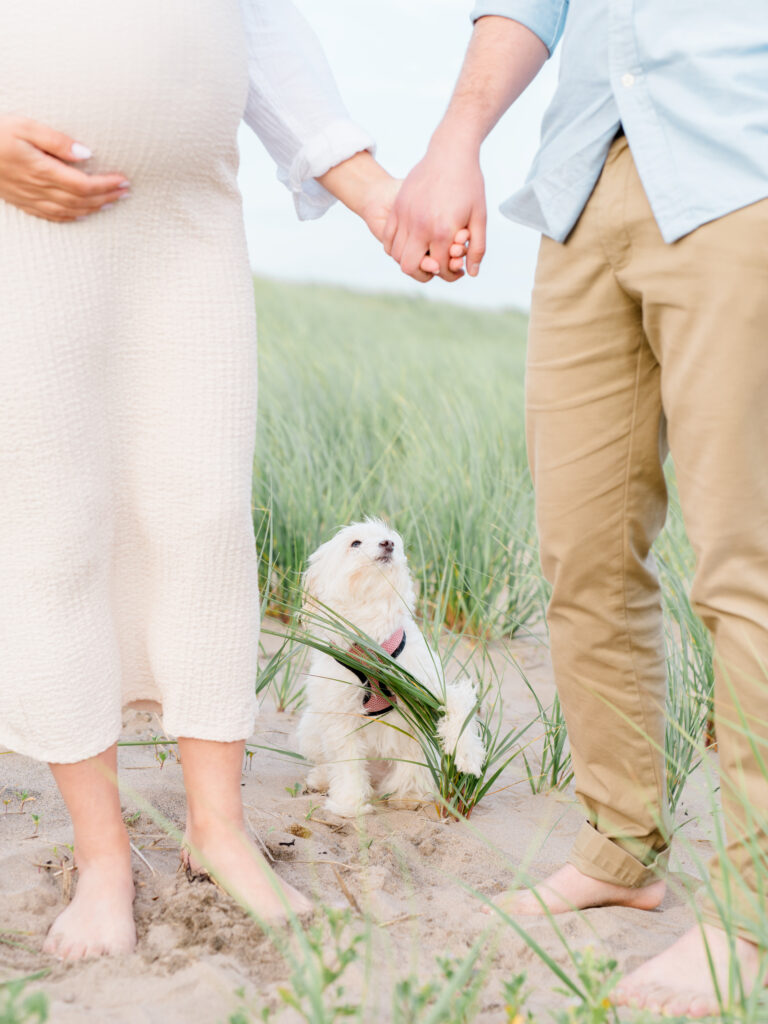 Capturing big moments in my friend’s lives is one of my favourite things about becoming a photographer. I have been so fortunate to have those close to me support me in this career, and Kim and Reid are no exceptions. Browse their adorable maternity session at Conrad’s Beach with their pup Ellie.